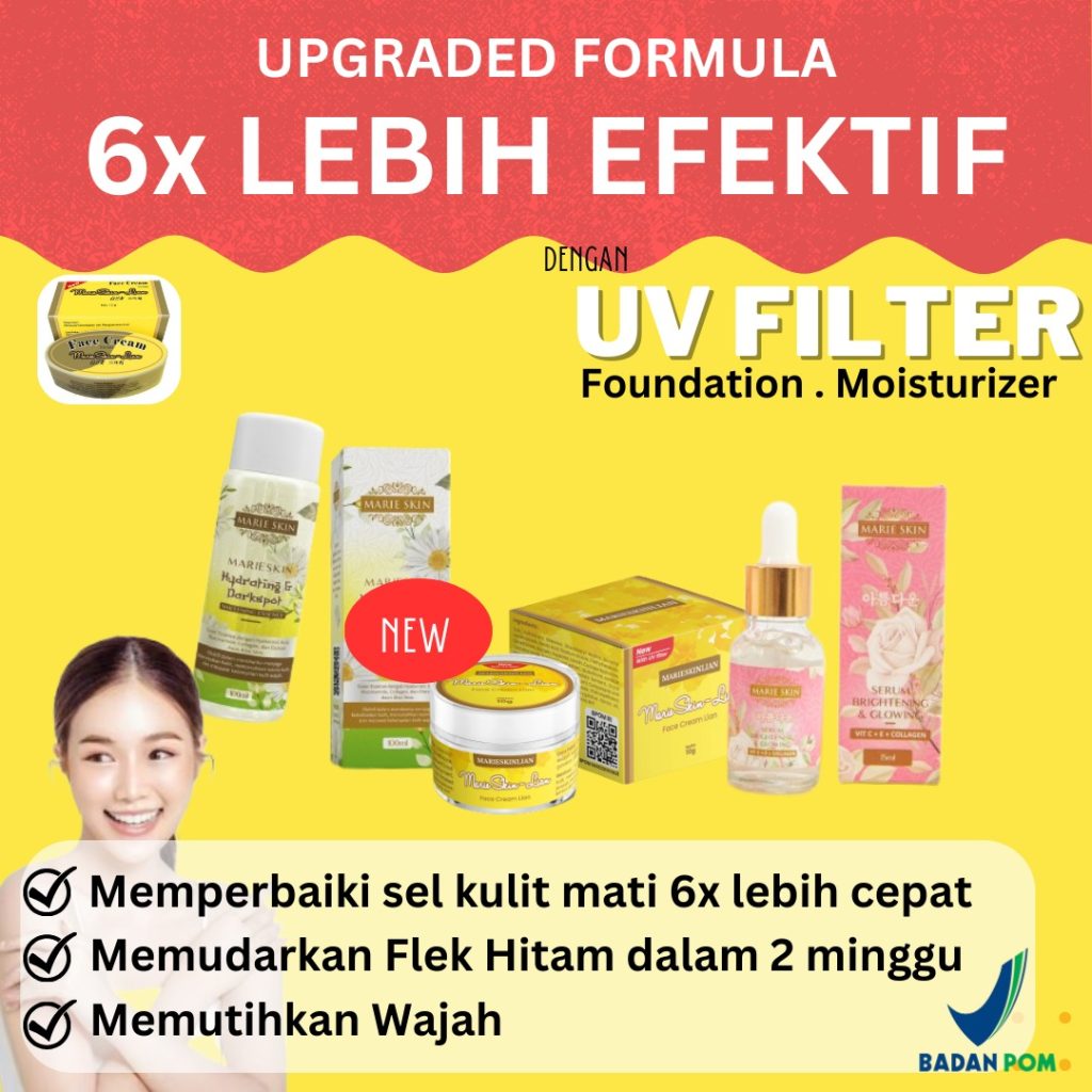 Kemasan Baru Marieskin dengan formula upgrade terbaru dan sudah mengandung UV Filter