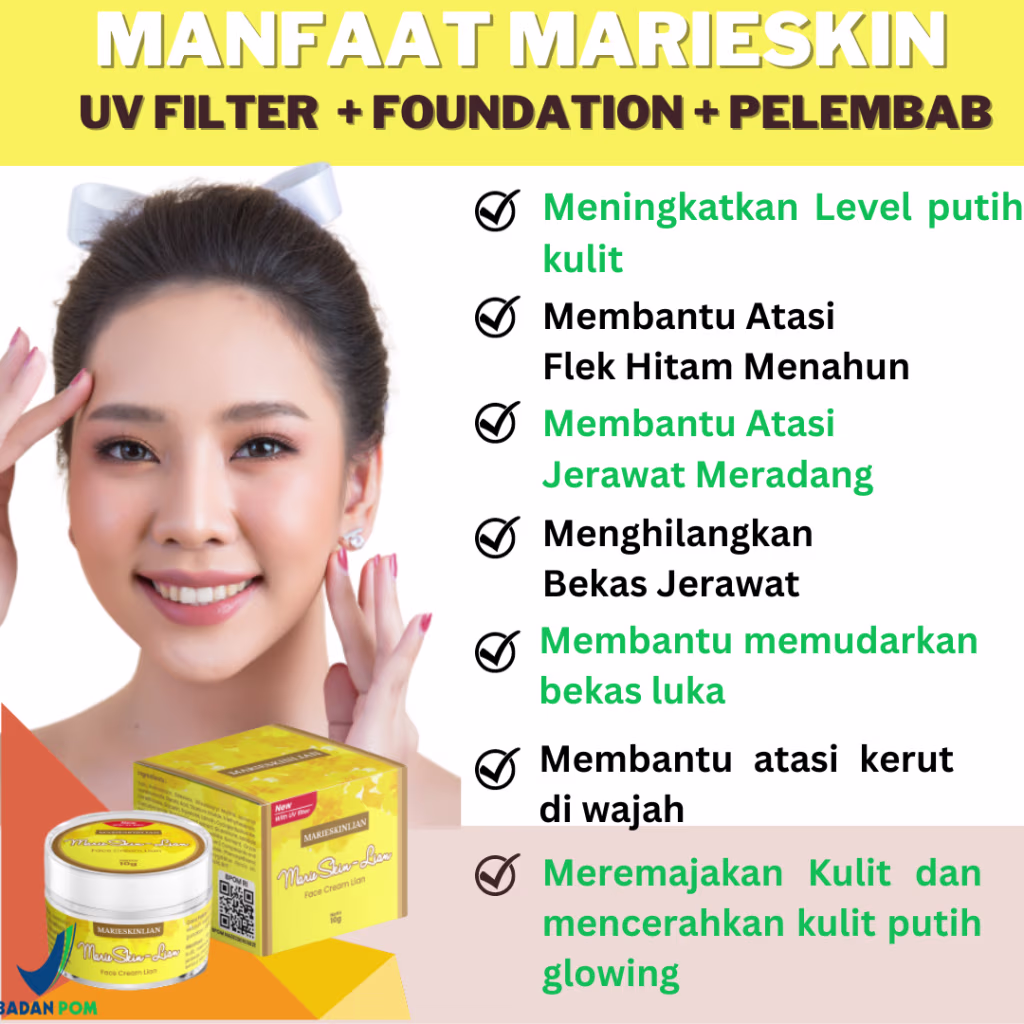 Kemasan Baru Marieskin dengan formula upgrade terbaru dan sudah mengandung UV Filter